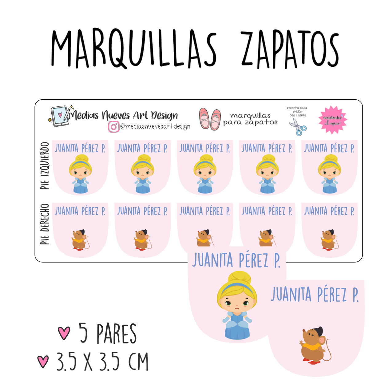 10 marquillas de zapatos adhesivas: 3.5cm x 3.4cm