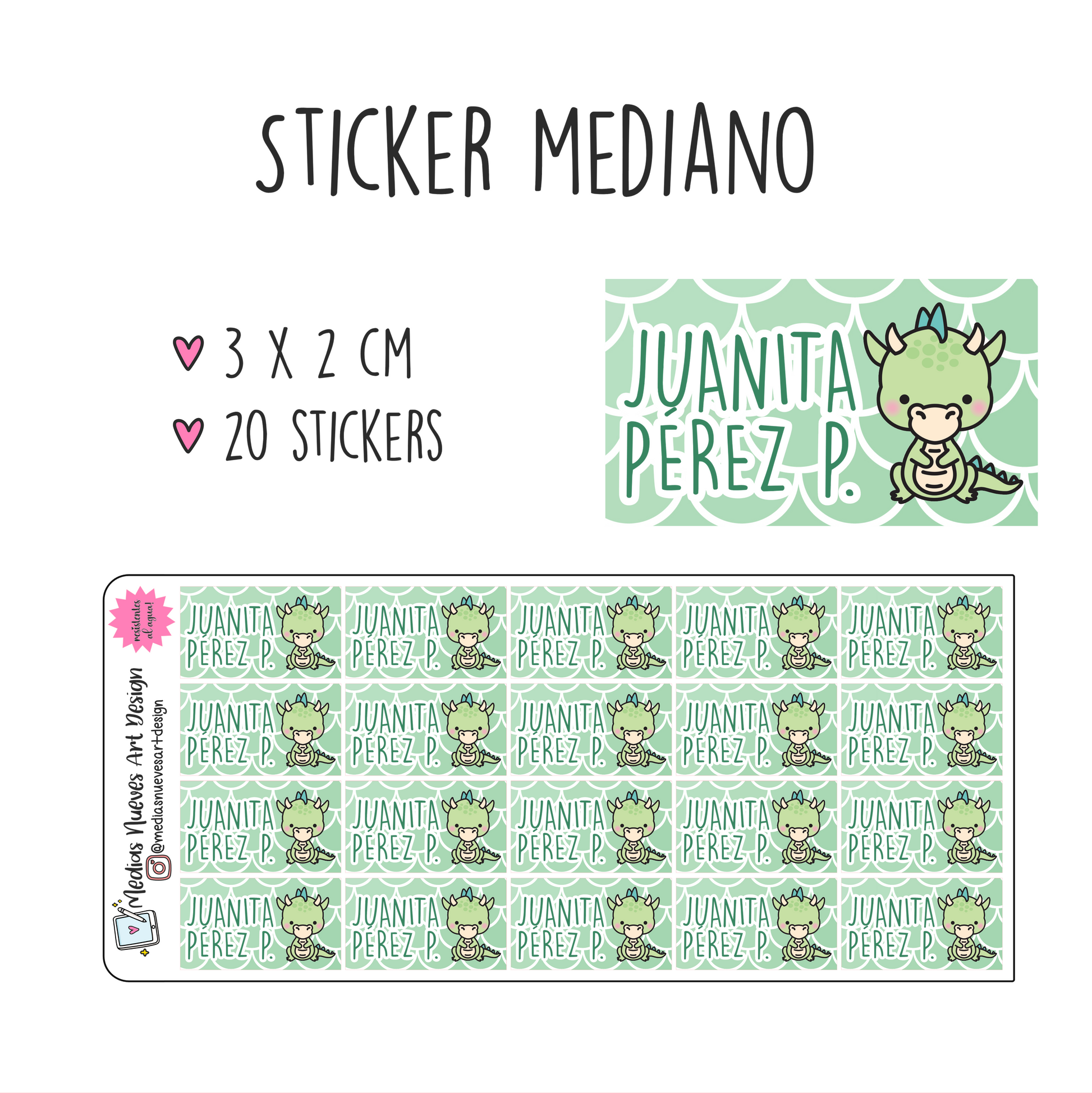 20 STICKERS MEDIANOS: 3.5cm x 2cm